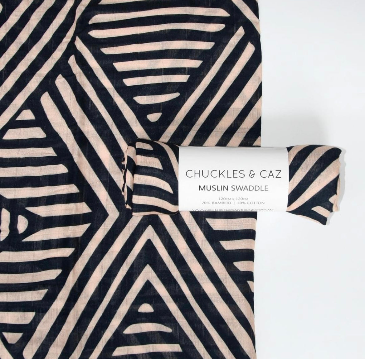 Treat that special little someone with this Chuckles + Caz Tribal Geometric Muslin Swaddle.